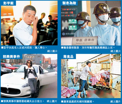 香港文匯報訊 環球網報道,10月13日發生在廣東佛山的兩歲女童悅悅遭汽車輾壓、18名路人漠然旁觀的事件,引發了全球對於中國社會道德狀況的激烈討論。有網絡調查結果指,95%的網友認為最近10年中國道德倒退,「官德」「醫德」下降最嚴重。