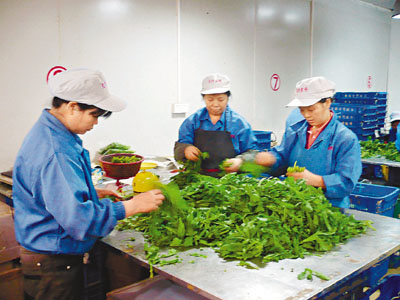 ■番禺東升農場工作人員把蔬菜包裝,以便貼上條碼編號。香港文匯報記者羅敬文 攝