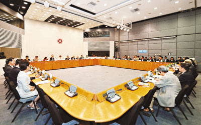 ■政府向來重視區議會的意見,即使未來委任議席逐漸減少,亦無損其代表性。圖為行政長官曾蔭權會見區議會主席及副主席聽取意見。 資料圖片
