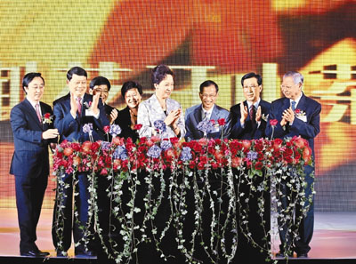 ■甬港經濟合作論壇慶祝10周年。浙江省委常委、寧波市委書記王輝忠(右二)表示,期望10周年作為新起點,進一步深化寧波與香港兩地各方面的合作交流。圖為一眾主禮嘉賓為2011甬港經濟合作論壇揭幕。 香港文匯報記者張偉民 攝