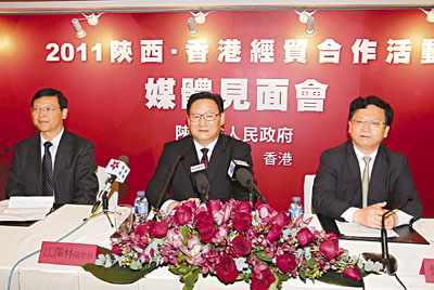 香港文匯報訊(記者 解玲、李陽波、熊曉芳)「2011陝西.香港經貿合作活動媒體見面會」昨日為陝西經貿活動周拉開帷幕。陝西省副省長、西咸新區管委會主任江澤林,副省長景俊海,省副秘書長姚超英等領導與本港28家媒體高層會面,借經貿活動周的契機,進一步推介陝西以及未來西部經濟新引擎「西咸新區」,並藉香港在金融、商貿物流等方面的優勢,促進陝港之間優勢互補,深化兩地全面合作。