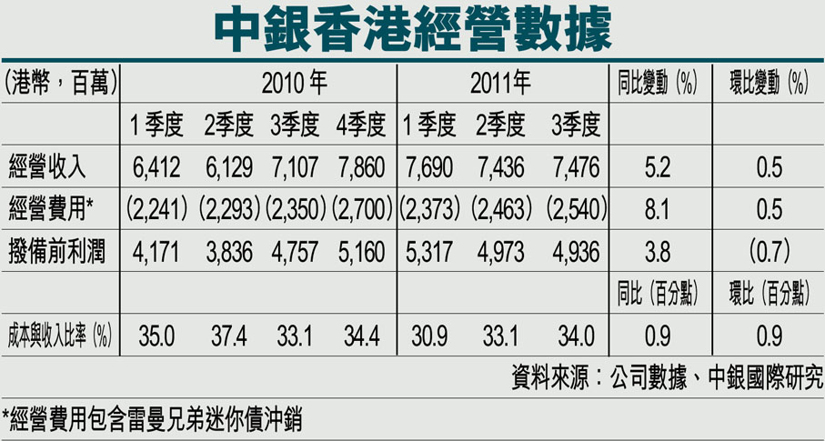 港股透視:中銀香港股息率吸引 (2011-10-28) (圖)