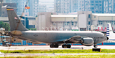 ■美軍KC-135加油機,前天在台北松山機場降落。網上圖片