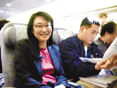 王雪紅是29日傍晚和夫婿、威盛電子總經理陳文琦一起從上海虹橋機場搭乘華航客機回台北松山機場。同機的台灣記者看到,王雪紅個性瀟灑自然,黑色西裝外套搭牛仔褲,坐在經濟艙第一排的位子,上了飛機要一雙拖鞋,坐下來就把腳蹬在牆上,一路讀報讀雜誌,不時用手搥搥疲累的雙腳;她沒用飛機餐,手上的茶喝完了、空杯握在手上繼續閱讀,也沒按鈴要求空服員收走杯子。