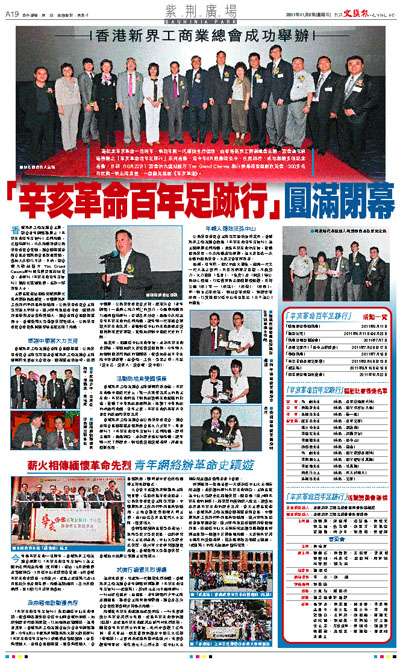 香港新界工商業總會在公民教育委員會、總會首席會長廖榕就及程練傳會長大力支持下,隆重舉行了「辛亥革命百年足跡行」系列活動,歷時五個月,通過講座、走訪歷史遺址等活動,讓年輕一代了解歷史,對培養愛國愛港精神,將產生積極作用。