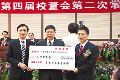 新晉為常務校董的2位港人分別是香港捷能國際有限公司董事總經理陳志煒及香港新富期貨有限公司董事總經理陳銘潤。會上,包括新加坡李氏家族,廈門中煙工業公司等基金會,企業和個人為學校捐資1,215萬元。校董會並將已經到位的李尚大集美大學學科建設基金1,000萬港元和第1個5年所產生的收益約250萬港元悉數捐予校方。