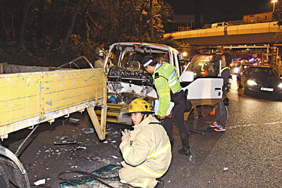 香港文匯報訊 (記者 杜法祖) 奪命車禍中不幸慘死修路工人李樹根,生前與妻育有一對子女同住沙田景田苑敬心閣一單位,其中長子現年33歲,幼女23歲,原家人早已預定下月22日筵開4席慶賀60歲大壽,未料突傳來噩耗,56歲妻子黎金彩無法接受事實,更含淚痛斥肇事客貨車司機疏忽奪去丈夫生命,令家庭痛失經濟支柱,將追究責任。