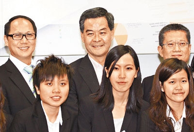 ■梁振英與香港傑出大學生財務策劃師比賽的參賽同學合照。香港文匯報記者 攝