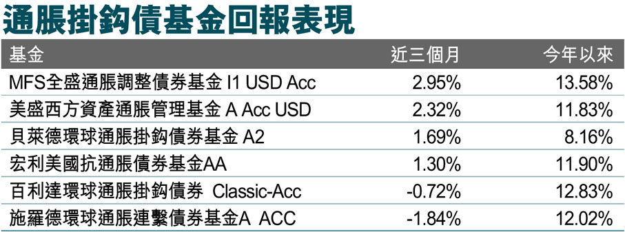 通脹掛u債基金回報表現 (2011-11-09) (圖)