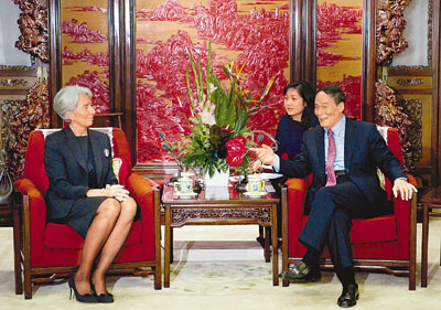 ■中國副總理王岐山昨在中南海會見拉加德。新華社