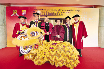 ■中大晨興書院昨舉行揭幕儀式,左起:金耀基、沈祖堯、陳樂宗、陳啟宗、鄭海泉、莫理斯。中大提供圖片