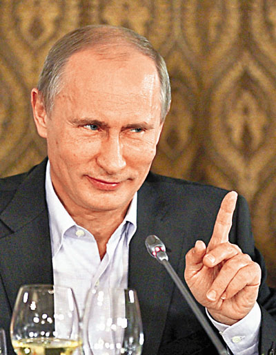 宣布參選明年總統大選的俄羅斯總理普京(見圖),前日與外國記者及學者會晤,他坦承俄國現時權力過度集中,失去人民信任,但強調沒有任何政治體制是完美,他會提倡「直接民主」,下放部分權力。他表示俄國非常擔心歐債危機,希望歐洲央行直接出手,並盛讚剛被趕下台的好友、意大利總理貝盧斯科尼是「歐洲最傑出政治家之一」。
