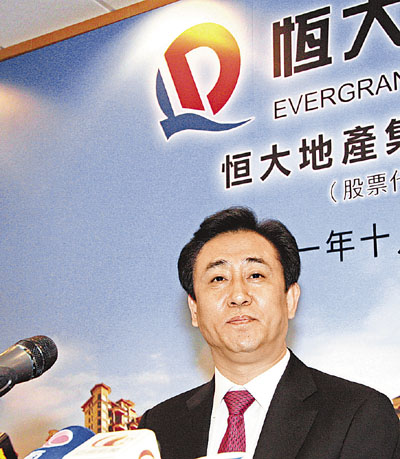 ■琱j董事局主席許家印表示,內地樓價及成交量仍然維持輕微下滑趨勢。香港文匯報記者趙建強 攝