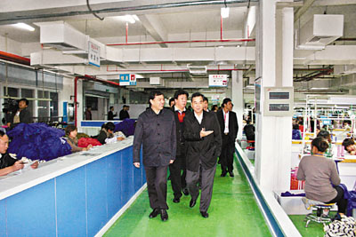 林樹哲帶領阜陽市委書記宋衛平(左)及訪問團成員參觀南源織造有限公司