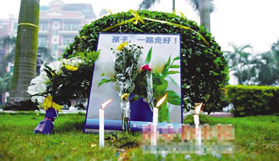 ■鄧天威死後後事無人料理,廣州碧桂園小區業主曾發起祭奠。 網上圖片