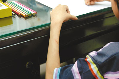 ■彤彤手臂十分瘦弱且有傷口。 網上圖片