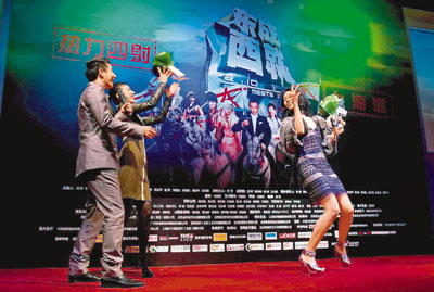 香港文匯報訊(記者 凡文)賀歲電影《東成西就2011》將於香港上映,前日三位主角莫文蔚(Karen)、黃奕及房祖名於上海就連走兩場活動為電影作宣傳。前日發佈會現場,新婚燕爾的莫文蔚在台上大拋花球,向在場人士送上祝福,花球最後落入黃奕手中,原來今年黃奕已是第三次接到花球,令黃奕不禁對自己的幸福有所期待,但她坦言:「我覺得幸福是每個人都渴望的一件事,但這件事並不是每個人都能控制的,很多時候老天自有安排。」