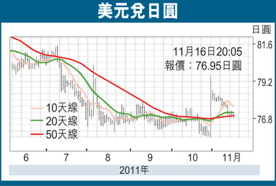 美元兌日圓匯價上周受制於78.20附近阻力後,其走勢已逐漸趨於偏弱,在先後跌穿78.00及77.00水平後,更一度於本周初反覆下滑至76.80附近的兩周低位。今次美元兌日圓的下調幅度能進一步擴大至76.80水平,除了是因為美元在未能持穩於78日圓水平後,開始引致部分投資者掉頭吸納日圓之外,日本經濟在第3季出現1.5%的正增長,亦是令美元兌日圓在近日持續受壓的原因之一。