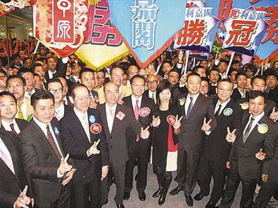 ■長實郭子威、曹皎明與六大地產代理為盛世誓師。 香港文匯報記者梁悅琴 攝
