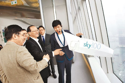 ■國家旅遊局局長邵琪偉率團參觀「天際100 香港觀景台」。