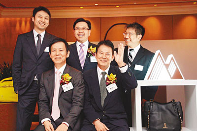 ■時代集團主席楊華強(前排右)及行政總裁楊和輝(前排左)等出席投資者推介會。香港文匯報記者張偉民 攝