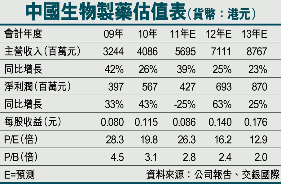 中國生物製藥估值表(貨幣:港元) (2011-11-22) (圖)