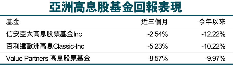 亞洲高息股基金回報表現