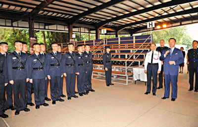 ■張震遠與警務處處長曾偉雄昨日出席警察學院結業會操。