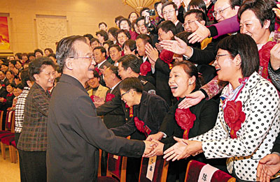 ■溫家寶等親切會見與會代表。 新華社