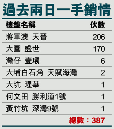 整體市場一手過去兩日雖然售出的接近390伙單位,但絕大部分為周六售出,二手成交亦低迷,反映市場承接力逐步減弱。