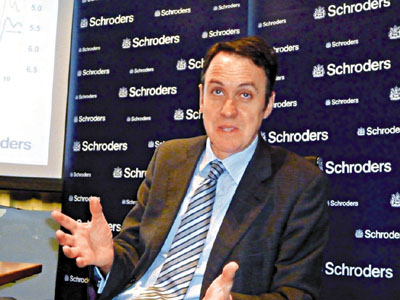 香港文匯報訊(記者 李永青、卓建安)歐債危機困擾全球經濟,很多人都想知道歐債問題何時才能完全解決。施羅德投資管理首席經濟師Keith Wade(見圖)表示,由於明年歐債危機仍難以解決,歐元區需要籌集資金應付,預計明年次季歐洲央行有可能推出量化寬鬆貨幣政策,但承認「印銀紙」並非長遠解決方案,建議可藉出售資產、徵收一次性稅務項目,如財富稅及金融交易等籌集資金。