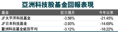 比如JF太平洋科技基金,主要是透過持有亞太地區與科技有關的公司股票,以達致長期資本增值。上述基金在2008、2009和2010年表現分別為-42.5%、49.48%及12.27%;其資產比重為97.28%股票及2.72%其他;而平均市盈率和標準差為12.57倍及22.53%。