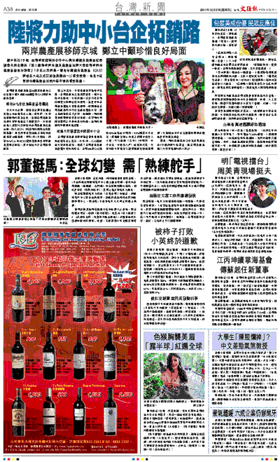 鄭立中表示,大陸農產品市場需求旺盛,台灣農產加工品品質優良,雙方合作前景廣闊。大陸將進一步努力改善兩岸經貿交流與合作的環境,為更多的台灣產品銷往大陸提供便利,特別是為台灣農產品和中小企業產品銷往大陸、建立品牌提供全力支持。他強調,兩岸經貿關係發展需要良好氛圍,希望兩岸同胞珍惜來之不易的良好局面,為兩岸關係和平發展再做貢獻。