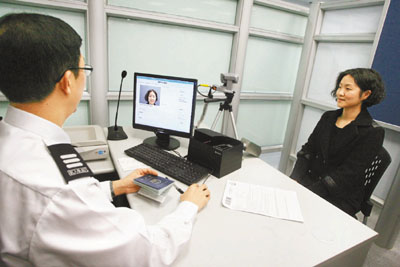 ■登記者須即場填寫表格,並提供通行證及簽注作證明,入境處職員會為登記者拍照及採集指紋,完成登記後,登記者會獲得一張「e-道」標貼,須貼於通行證封底,整個過程需時約5分鐘。香港文匯報記者莫雪芝 攝