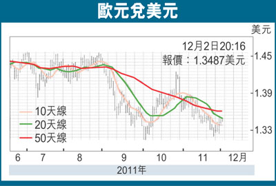 另一方面,歐盟財長在本周同意將歐洲金融穩定機制的救助基金槓桿化以及將會向希臘發放新一輪80億歐元的緊急貸款後,市場對歐債危機的擔憂已暫時有所紓緩,所以就算歐盟現時還未能給出救助基金槓桿化後的實際金額,但投資者現階段已是不願把歐元匯價往下推得過低,這將有助歐元的短期表現。受到各主要央行往後仍可能會聯手推出新措施以增加市場信心的情況下,歐元兌日圓以及歐元兌瑞郎等交叉匯價均於近日有所反彈,這亦頗為有利歐元於稍後的走勢。