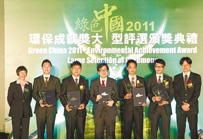得獎者為光大國際行政總裁陳小平、江鈴汽車總裁陳清遠、南昌大學校長周文斌、利山礦業董事長王偉標、大學生陳文森,由中國極地博物館基金會創辦人李樂詩(左一)和香港環境保護協會主席樊熙泰(右一)向得獎者及其代表頒獎。