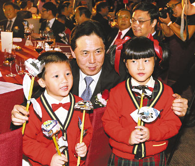 兒童向嘉賓致送環保紙花 (圖)