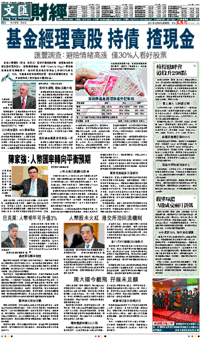 ¡@»´ä¤å¶×³ø°T¡]°OªÌ §E¬ü¥É¡^Àô²y¥«³õ«ùÄòªi°Ê¡A«d®z°òª÷¸g²z¹ï§ë¸êªÑ²¼ªº«H¤ß¡A¨úºAÂàÁͼf·V¡A§ï±·¡uCash is King¡v¡CúÀÂ׳̷s°òª÷¸g²z½Õ¬dÅã¥Ü¡A¬Ý¦nªÑ²¼ªº°òª÷¸g²z¥Ñ¤W©uªº63%°¦Ü30%¡A¥b¼Æ°òª÷¸g²z±N´î«ùªÑ²¼¡A¹O¥|¦¨ÀÀ¼W«ù²{ª÷¡A¥t¥ç¦³¹O¨â¦¨¤H·|©ó¶Å¨é¤¤´M§ä¦¬¯q¡C