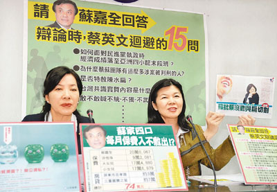 ■國民黨立院黨團副書記長潘維剛(右起)、立委陳淑慧9日在黨團記者會表示,民進黨主席蔡英文的宇昌投資案,疑涉嫌國庫通家庫,呼籲蔡英文應該出面講清楚。中央社