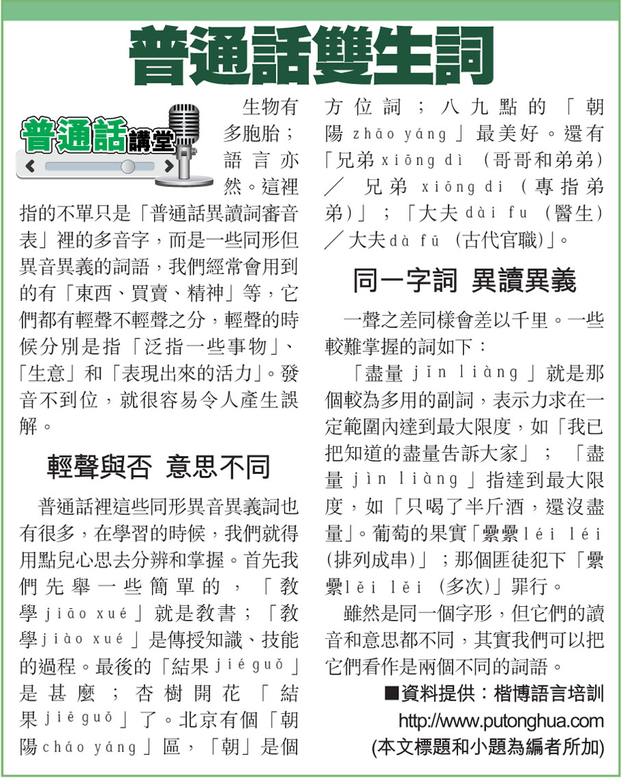 粵港越愛普通話:粵普語序 時見相反 (2011-11-22) (圖)