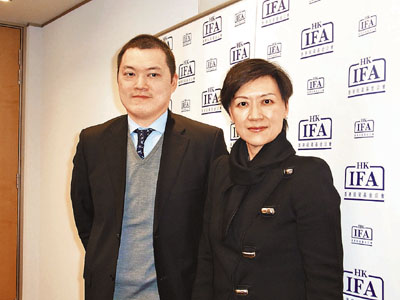 ■香港投資基金公會主席程劍慧(右)表示,基金銷情上月已轉好,本月初至今亦錄得淨流入。旁為該會副主席潘新江。 香港文匯報記者余美玉 攝