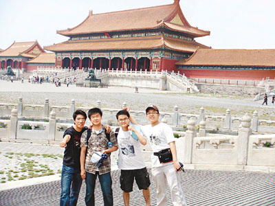■龔曉磊(右二)與同學一起到故宮博物館學習。 受訪者提供