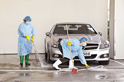 香港文匯報訊(記者 林裕華)徒手撿拾染有H5禽流感病毒死雀後不適的48歲中學女文員,與兒子在醫院接受快速測試後,昨日證實兩人均對H5禽流感呈陰性反應,即未有感染病毒。女文員任職的元朗趙聿修紀念中學昨停課1天,全校大清洗及消毒,即使學生欲返校取回書本也不准進入,校方稱今日會取消校內所有活動。