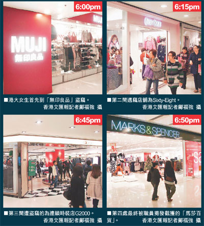 警察其後到場拘捕被告,警誡下,被告承認因一時貪心而犯案,物品全部自用,並透露於約6時先到無印良品犯案,15分後到SixtyEight,再於30分後到G2000,最後到馬莎。被告於1小時內犯下4件偷竊案件,偷取總值6,195元的貨物。