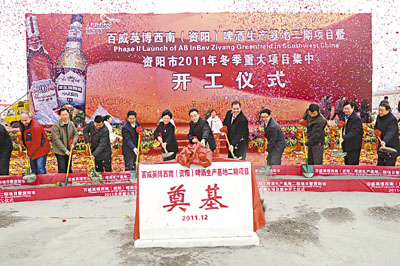 香港文匯報訊(記者 況璃、唐鎏宇 資陽報道)四川資陽2011冬季重大項目集中開工儀式日前在百威英博資陽工廠二期工程現場舉行,這是資陽繼今年春秋兩次集中開工127個重大項目後的又一次開工盛會。中共四川省委常委、常務副省長魏宏出席儀式並宣佈項目開工。