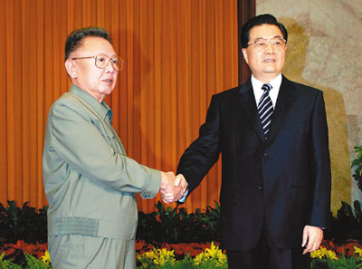 ■中國國家主席胡錦濤2010年5月會見金正日。資料圖片