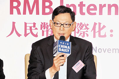 陳德霖昨在深圳出席一個名為「人民幣國際化與深圳金融中心建設」的講座中表示,截至10月底本港銀行人民幣存款餘額已超越6,000億元,為人債提供有利發展條件。