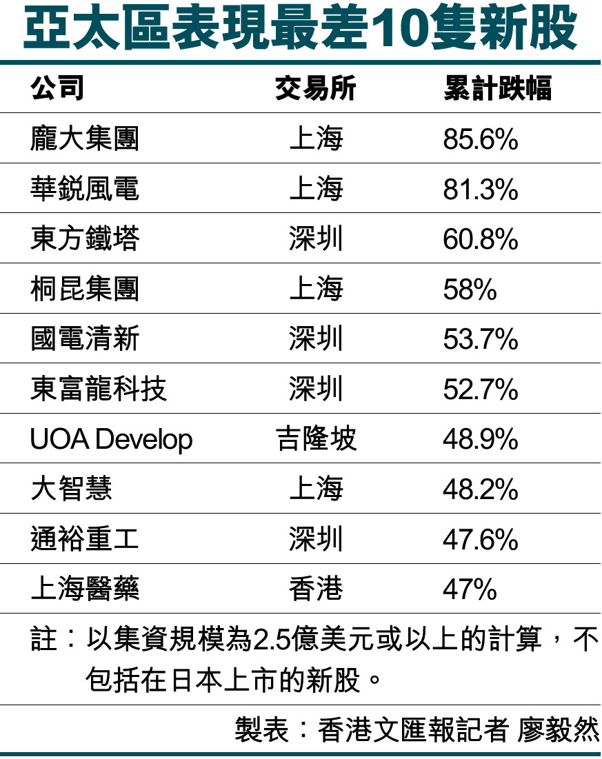 註︰以集資規模為2.5億美元或以上的計算,不包括在日本上市的新股。製表:香港文匯報記者 廖毅然