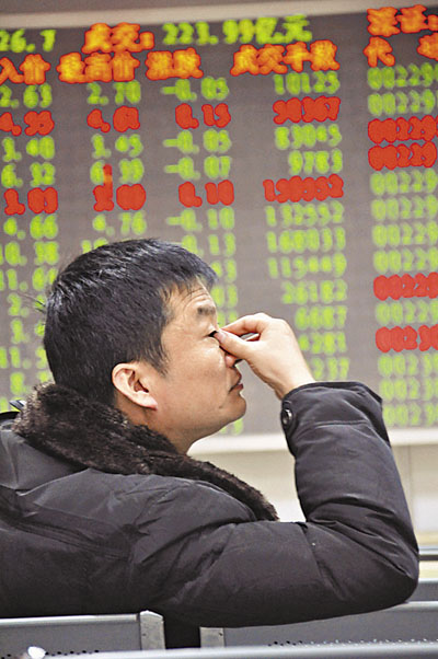 ■股民在青島一家證券交易廳關注股市行情。 資料圖片