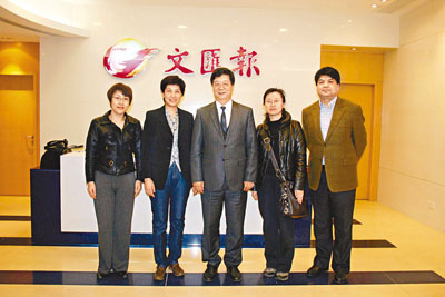 12月23日,北京市旅遊發展委員會副主任李艷萍(左二)等一行到訪香港文匯報,獲本報董事長社長王樹成(中)等熱情接待。